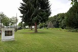 Auf einer Stele am Nordende des Friedhofs ist eine Gedenkplakette in französischer und deutscher Sprache angebracht. Hier steht zu lesen: