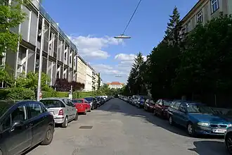 Spätsecessionistisches Wohnhaus (1914) am Dr.-Josef-Resch-Platz.
