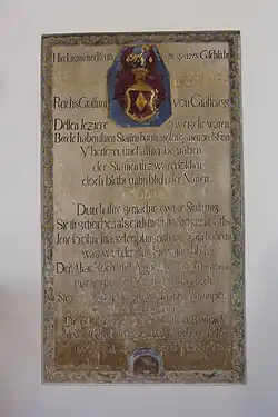 Das Epitaph neben dem Marienaltar erinnert an die Reichsgräfinnen Elisabeth, die 1744 im Alter von 30 Jahren starb, und Eleonore von Grafenegg, zwei Wohltäterinnen des Klosters, mit denen das Geschlecht der Grafenegg ausstarb.