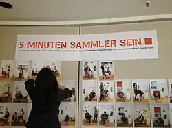 - Kunstfestival 48h Neukölln:[26] Mehrfach beteiligte sich das Frauenmuseum Berlin an diesem Kunstfestival, 2014 mit der Aktion 5 Minuten Sammler sein, die es danach auch auf der Kunstmesse Positions präsentieren konnte.[27] 2016 hieß der Beitrag des Frauenmuseum Wörter, die wir satt haben – essen wir sie auf! Von den Künstlerinnen mit essbarem Material gebildete Wörter konnten von den Besuchenden verspeist und somit vernichtet werden.[28]