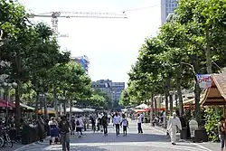 Ein breiter, gepflasterter und von Platanen bestandener Flanierstreifen in der Mitte wird auf beiden Seiten von einem weißen Marmorstreifen abgegrenzt. Bis dahin dürfen sich die Restaurants mit ihren Tischen und die Geschäfte mit ihren Sonderangeboten ausbreiten. Ein tiefgelegter Brunnen wurde 1977 bei der Neugestaltung angelegt. Bis 1944 befand sich hier das Säuplätzi, das seinen Namen vom mittelalterlichen „Sauborn“ erhielt, der im 17. Jahrhundert verfüllt und durch den Kaiserbrunnen ersetzt wurde. Der Sauborn ist ein Zeugnis dafür, dass es im Mittelalter und noch in der frühen Neuzeit durchaus üblich war, mitten in der Stadt Schweine zu halten.