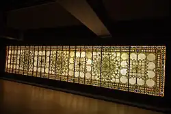 Der Fußboden besteht aus Eichenparkett mit geometrischem Muster. Das mittlere Fenster wurde von Tiffany aus Buntglas entworfen und weist ein komplexes Muster auf, das klare byzantinische Einflüsse erkennen lässt. Die Elemente sind in den Farbtönen Orange, Grün, Gelb, Rosa, Karmin und dem Tiffany-typischen opalisierendem Weiß gehalten, wodurch das Fensterdesign subtil die Farben des Raums aufgreift.[9]