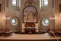 Das Altarbild wurde vom Skagenmaler Michael Ancher gemalt und zeigt Jesus und seine Jünger am See Tiberias nach der Auferstehung (Joh 21,15–17 ). Der Altar ist von einer Kniebank für das Abendmahl umgeben. Das Altarbild war eingefasst in einer Altarwand aus braun lackiertem Holz in Kreuzform. Mit der Sanierung im Jahr 2019 wurde diese Rückwand entfernt und eine kleine, hellere Rückwand, welche oben in Form des Altarbildes abschließt ersetzt.