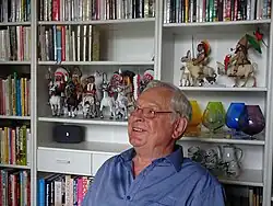 Mit seinen unbeweglichen dreidimensionalen Szenerien erzeugt er eine Dynamik und verbindet die Bildwelten von Comic, Kunst und Volkskunst.[3][4]