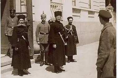- ↑ Laura Engelstein: Russia in Flames - War, Revolution, Civil War, 1914-1921. Oxford University Press, 2018, ISBN 978-0-19-979421-8, S. 324.