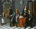 Gruppenbild der Familie de Man in der Apotheke 'In de Spiegel' am Delfter Wijnhaven | Cornelis de Man | ca. 1670 | 90 × 112 cm | Nationalmuseum Warschau | |
