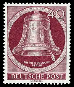 In den Jahren 1951 bis 1953 wurden insgesamt 15 Briefmarken der Deutschen Bundespost Berlin mit dem Bild der Glocke (Michel-Nummern 75–79 Klöppel links, 82–86 Klöppel rechts und 101–105 Klöppel mittig) ausgegeben.[9] Aufdruckausgaben mit den Michel-Nummern 118 und 155 erschienen anlässlich der Wahl des deutschen Bundespräsidenten 1954 und zur Hilfe für die vom Julihochwasser 1956 Geschädigten (20+10).