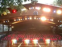 Durch die zunehmende Platznot – das Schulhaus und Rüters Privaträume waren für die wachsenden Spieler- und Zuschauerzahlen längst zu klein geworden – kam der Lehrer auf die Idee, in seinem Obstgarten eine Freilichtbühne zu errichten. Gemeinsam mit seinen Spielern entwarf er eine Konzeption und steckte die Bereiche für Bühne und Zuschauer ab. Die gesamte Anlage war damals noch flach, die im Vergleich zu heute mit rund 25 m² noch sehr kleine Bühne lag lediglich 25–30 cm erhöht.[2]