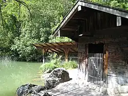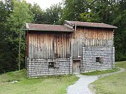 | Ehemaliges Eingangsgebäude | Bauform und Dachstuhl stammen von der Thürlmühle aus Weilheim | 1976 |
