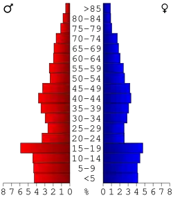33,1 Prozent der Bevölkerung waren unter 18 Jahre alt, 9,3 Prozent zwischen 18 und 24 Jahre, 24,7 Prozent zwischen 25 und 44 Jahre, 20,4 Prozent zwischen 45 und 64 Jahre. 12,4 Prozent waren 65 Jahre oder älter. Das Durchschnittsalter betrug 32 Jahre. Auf 100 weibliche Personen kamen 105,8 männliche Personen. Auf 100 Frauen im Alter von 18 Jahren und darüber kamen 105,8 Männer.