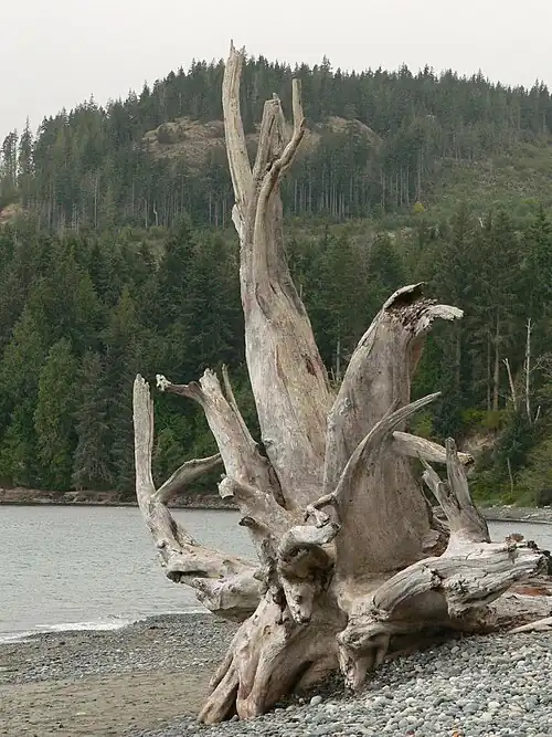 Die Vegetation im Park ist typisch für den gemäßigten Regenwald. In der Klimaklassifikation nach Köppen und Geiger entspricht das Klima dem Typ Cfb. Innerhalb des Ökosystems von British Columbia wird er der Very Dry Maritime Subzone innerhalb der Coastal Western Hemlock Zone zugeordnet.[3][4] Diese biogeoklimatischen Zonen zeichnen sich durch ein ähnliches Klima sowie gleiche oder sehr ähnliche biologische und geologische Voraussetzungen aus. Daraus resultiert in den jeweiligen Zonen dann auch ein sehr ähnlicher Bestand an Pflanzen und Tieren.[5] Im Parkgebiet wachsen hauptsächlich westamerikanische Hemlocktannen, Douglasien und der Riesen-Lebensbaum (im englischen Sprachraum „Western Red Cedar“ genannt). Epiphytische Flechten und Moose überziehen die Baumstämme.