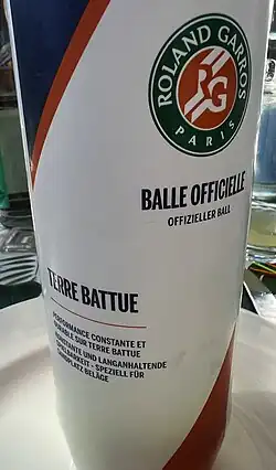 Bis 1978 wurde mit weißen Bällen gespielt. Danach wurde zu gelben Bällen gewechselt, um die Sichtbarkeit am Fernsehbildschirm zu verbessern. Seit 2020 werden bei den French Open mit Bällen von Wilson gespielt. Der Wilson-Ball löste den in den Jahren 2011 bis 2019 gespielten Ball von Babolat ab. Während der French Open werden geschätzt 100.000 Bälle verbraucht, davon 70.000 während der 15 Turniertage.[49] Von einigen Topspielern wurde der Ball kritisiert, weil er zu schwer und zu groß sei, was für die Schulter und den Ellbogen eine große Belastung wäre. Dies würde vor allem physischen Spielern, die viel Kraft haben, zugutekommen. Ebenso sind aufschlagstarke Spieler im Nachteil. Es resultieren lange Ballwechsel, die laufstarke Spieler bevorteilen.[50] Es sind acht Bälle in Verwendung, die erstmals nach sieben Spielen und dann alle weiteren neun Spiele gegen neue Bälle ausgetauscht werden. Die gebrauchten Bälle werden zu einem niedrigen Sonderpreis im allgemeinen Verkauf angeboten.