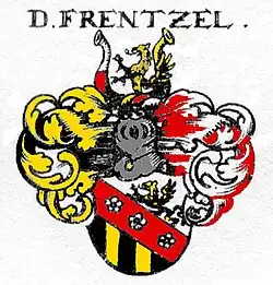 Überliefert sind zunächst die Regensburger inneren Räte Mathäus († März 1700) und Bartholomäus (1605–1670),[3] Söhne des aus St. Annaberg nach Regensburg eingewanderten Handelsmanns Johann Frentzel, der in Regensburg Salzbeamter wurde.[1][2] Johann Frentzel hatte am 10. Februar 1601 in Regensburg Katharina (geb. Kandler; * 8. September 1575), Tochter eines Johann Kandler, „Schulhalter“ in Regensburg geheiratet. Der Ehe entstammten sechs Kinder.[4]