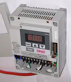 - ↑ invertekdrives.com Beschreibung eines einphasigen FU auf der Website der Fa. Invertek Drives; abgerufen am 10. Nov. 2017