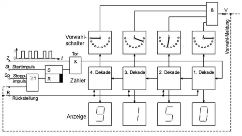 Zählschaltung mit Zusatzeinrichtungen, aber ohne Eingangsstufe und Zeitbasis