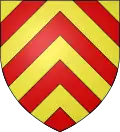 Blasonierung: „Vorn in Gold eine ausgerissene grüne Esche, hinten in Blau besamt von goldenen Lillienblumen ein steigender goldener Löwe.“ |