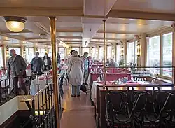 Zur Bewirtung der Gäste befindet sich im Schiffsinneren ein Salon, dessen Besonderheit ein sog. „Buffet-Lift“ ist: Das Buffet wird mitsamt dem Personal aus der Kombüse im Unterdeck heraufgefahren.