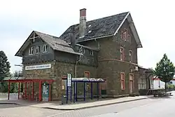 Dieser Bahnhof zeigt die typischen Gestaltung der Bauten aus der Erweiterung der Bahnstrecke Limburg–Altenkirchen von 1884 bis 1886 zwischen Klassizismus und Heimatstil. Basalttuff aus der Region wurde, wie bei den meisten übrigen Bauten an der Strecke zu sichtbarem Mauerwerk verarbeitet. Das Haupthaus hebt sich deutlich von den niedrigeren Querflügeln ab, wobei der Nordflügel bereits im 20. Jahrhundert einen deutlichen Umbau erfahren hat. Ein angebauter Lagerschuppen zeigt Gestaltungselemente des Fachwerks. Nachdem das Bahnhofsgebäude Ende des 20. Jahrhunderts größtenteils nicht mehr für seinen ursprünglichen Zweck verwendet wurde, setzte ein zunehmender Zerfall ein. 2013/14 wurde es gemeinsam mit dem Bau eines Verbrauchermarktes in unmittelbarer Nachbarschaft von einem privaten Investor erworben, saniert und zum Geschäfts- und Praxisgebäude umgestaltet. Adresse: Bahnhofstraße 37
