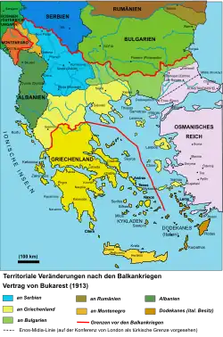 Die Regelung von Bukarest bedeutete für Griechenland zwar keine volle, aber eine weitgehende Befriedigung der nationalen Ansprüche. Im Zuge der Balkankriege nahm das Territorium des griechischen Staates um etwa 90 Prozent zu, Griechenlands Bevölkerung wuchs von 2,6 auf 4,7 Millionen Einwohner.