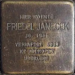 - Renate Knigge-Tesche: Friedel Janecek (1905–1980), In: Angelika Arenz-Morch, Stefan Heinz (Hrsg.): Gewerkschafter im Konzentrationslager Osthofen 1933/34. Biografisches Handbuch (= Gewerkschafter im Nationalsozialismus. Verfolgung – Widerstand – Emigration, Bd. 8). Metropol, Berlin 2019, ISBN 978-3-86331-439-2, S. 279–289.