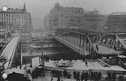 1924 schrieb die Stadtverwaltung den Neubau der heutigen Friedensbrücke aus. Es langten neun Entwürfe von Eisenbrücken und fünf von Eisenbetonbrücken ein. Ausgewählt wurde das Angebot von Waagner-Biro.