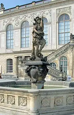 Als im Jahre 1866 das Denkmal für den sächsischen König Friedrich August II. auf dem Neumarkt errichtet wurde, versetzte man den Brunnen an seinen heutigen Standort. Im Jahr 1969 restaurierte der Bildhauer Egmar Ponndorf den Brunnen, dabei wurde eine Kopie der Brunnenplastik aufgesetzt.