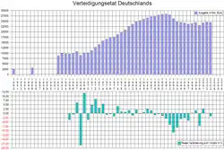 In den 1970er Jahren betrug die Personalstärke der Armee der DDR, der NVA, 170.000 Mann und die der Bundeswehr 495.000 Mann. Gemäß dem Personalstrukturmodell PSM 2010 wurde die Bundeswehr im wiedervereinigten Deutschland bis zum Jahr 2010 auf eine Personalstärke von 250.000 Mann in Friedenszeiten reduziert. Entsprechend sanken die Ausgaben des Verteidigungsministeriums am gesamten Staatshaushalt von 20 % im damaligen Westdeutschland auf 10 % heute.
