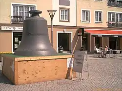 Nach langem Streit zwischen dem Kuratorium, dem Stadtrat und der Stadtverwaltung über den Standort und die Gestaltung wurde ein einfacher Glockenstuhl aus blaulackierten Stahlträgern für die Friedensglocke errichtet. Seit dem 9. November 2002 hängt die Glocke am Eingang der Ratsgasse, gegenüber dem Rathaus. Sie arbeitet mit einem elektromechanisch betriebenen Klöppel.