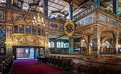 Die prächtige Ausstattung ist im Stil des Barocks gehalten. Für die Malereien von 1696 an der Decke des Hauptschiffs, der Seitenschiffe und des Transsepts waren Christoph Kalicki und Christian Süßenbach verantwortlich. Auch die Emporen sind reich bemalt und geschmückt. Weitere Ausstattungsstücke sind u. a.: