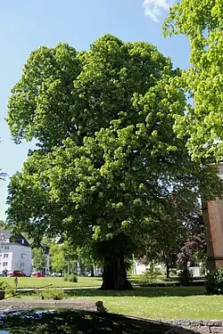 Die Linde wurde am 22. Juli 1650 anlässlich des Endes des Dreißigjährigen Krieges gepflanzt. Sie war als Naturdenkmal ausgewiesen, ging aber 1984 ein. Es folgten zwei Ersatzpflanzungen.[5] |