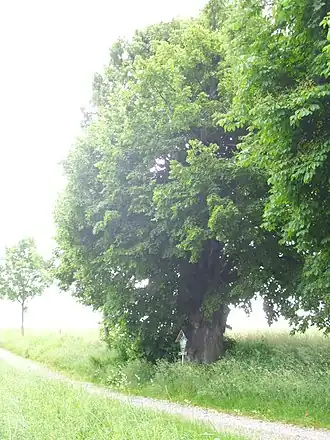 Friedenslinde mit Tafel nahe der Schranner Warte.[4] | |