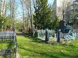 Einige Grabstätten auf Georgen V; mittig hinter dem Baum die Auferstehungskirche