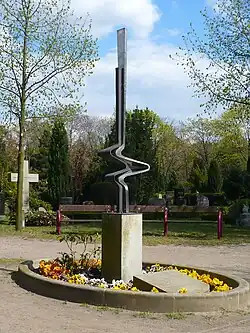 Grabstätte der Familie Kraatz mit Stahlplastik von Achim Kühn