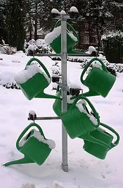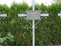 Fahrbare Halterung für Trauerkränze auf dem Stadtfriedhof in Schwetzingen