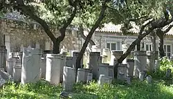 Im Islam ist die Bestattung der Toten in Richtung Mekka vorgeschrieben,[6] so dass alle Grabstellen auf islamischen Friedhöfen gleich ausgerichtet sind. Häufig sind sie aus Stein errichtet, teils gemauert oder mit Kacheln belegt. Häufig finden sich Stelen oder Steine am Kopf- wie Fußende. Särge sind nicht üblich, die Toten werden nur in weiße Tücher gehüllt und direkt in die Erde gelegt. Zudem ist der Begräbnisplatz festgeschrieben bis zum Jüngsten Tag, sodass weder neu belegt noch umgebettet wird.