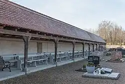 In den Arkaden befindet sich ein sogenanntes „Bahrhäusschen“, in dem die Totenbahren aufbewahrt wurden. Es wurde erstmals 1666 genannt, als repariert werden musste. Die Bahren, die zum Transport der Toten aus dem Haus zum Friedhof verwendet und im Laufe der Zeit erneuert wurden, waren noch zu Beginn des 21. Jahrhunderts im Häuschen aufbewahrt.[4]