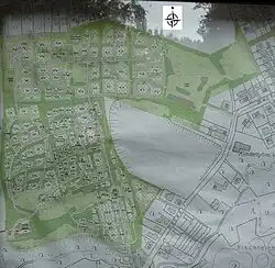 Die verklinkerte neogotische Kapelle von 1928 nach Plänen von Otto Blendermann, anfänglich im Mittelpunkt, steht nun nach den Erweiterungen im Eingangsbereich. Die eindrucksvolle Ehrenanlage für die Opfer aus dem Zweiten Weltkrieg ist in der Nähe der Kapelle.[1]