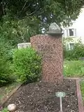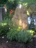 K | Ellen Vollmer. | 1951 | 2014 | Grob bearbeiteter, dreieckiger Grabstein, aus dessen Seite eine kniende Trauernde herauswächst. |