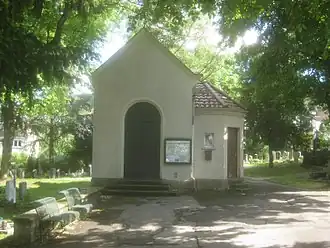 Der Friedhofseingang an der Schurwaldstraße führt zu dem schlichten Alten Leichenhaus, das in der Mitte des Friedhofs zwischen den Abteilungen 3 und 7 liegt. Das kleine Gebäude mit einer Grundfläche von etwa 50 Quadratmetern besteht aus einem schmalen, kapellenartigen Bau mit Satteldach und einem niedrigeren fünfeckigen Apsisanbau mit Zeltdach. In dem Anbau befindet sich auch eine öffentliche Toilette.