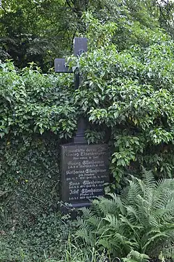 | A/50-51 | Elsenheimer | 1901 | Kreuzdenkmal auf hohem Schriftsockel aus poliertem schwarzen Granit. Die Figur des gekreuzigten Christus darauf besteht aus Galvanobronze. | ||