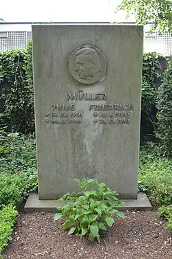 | B/144 | Müller | 1943 | Johann Tempel | Rechteckstele mit Porträtrelief aus geschliffenem hellen Gravenhorster Sandstein | |