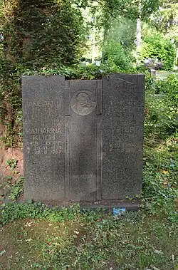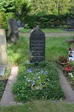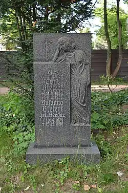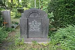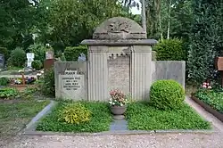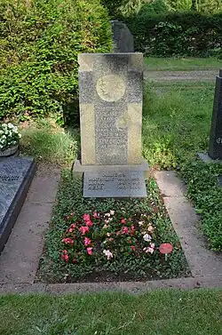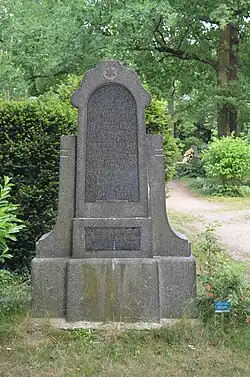 E/148 | Richter | 1931 | Johann Tempel | Dreiteilige Stele aus mattgeschliffenem Diabas. Das schmale überhöhte Mittelteil wird durch ein Relief in Anlehnung an die Orpheussage hervorgehoben. Das Denkmal war im Jahr 2015 abgeräumt. |