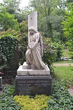 | B/56-57 | Speier-Grünewald | 1901 | Marmorplastik einer Trauernden vor Säulenstumpf auf blockhaftem Granitsockel | ||