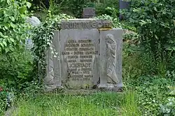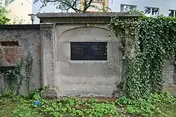 | C/150-152 | Conrad-Ries | 1914 | Neoklassizistische Ädikula zwischen Inschriftensteinen aus Kalkstein. Im Rundbogen des Giebels befindet sich ein Relief mit Kreuz und Ölzweig. | ||