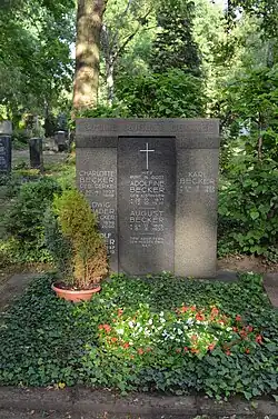 | H/4 | Becker | 1948 | Johann Tempel | Serielles Denkmal nach dem ästhetischen Geschmack der 1930er Jahre aus mattgeschliffenem Diabas | |