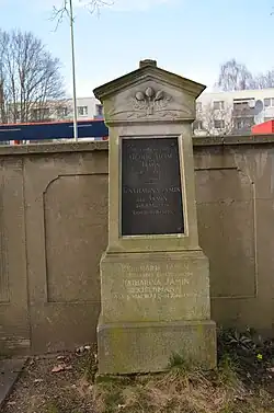 | C/adM 27-28 | Jamin | 1890 | Übergiebelte Marmorstele mit Schrifttafeln aus schwarzem Granit mit reliefierten Mohnkapseln im Giebelfeld. | ||