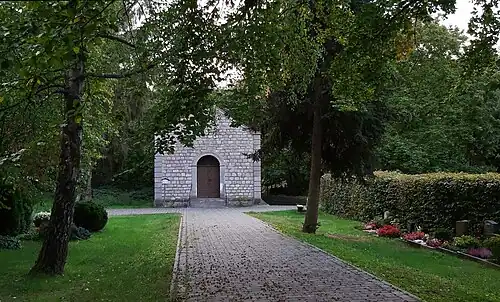 Bereits 1921 erfolgte eine Erweiterung des Friedhofsgeländes nach Süden. Auf dem kommunalen Teil vom Friedhof befinden sich weitere Grabfelder für Erd- und Urnenbestattungen. Es entstanden dabei auch Urnengemeinschaftsanlagen für halbanonyme und anonyme Beisetzungen.[7]