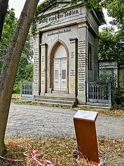 ↑Kerstin Hentschel, Martina Jesse: Historische Friedhöfe in der Mitte Ost-Berlins. Hrsg.: Projektgruppe „Erhebung und Aufarbeitung von Umweltdaten auf Friedhöfen“. Berlin 1995, S.14f.