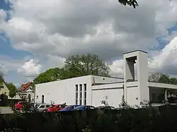 Im August 1965 wurde die alte Aufbahrungshalle abgetragen und mit dem Neubau einer neuen Halle durch Architekt Baurat Josef Strelec begonnen. Die Gestaltung des Innenraums übernahm der Architekt Erich Boltenstern. Teile des Innenraums wie das dreiteilige Bleiglasfenster, das Altarmosaik und das Altarkreuz wurden vom Maler Hermann Bauch ausgeführt. Die Halle wurde 1967 eröffnet und 1989 renoviert.