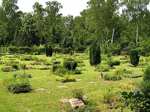 Der landeseigene Friedhof Ruhleben im Berliner Ortsteil Westend (Ortslage Ruhleben) ist ein seit 1952 bestehender Parkfriedhof mit einer Größe von 13,9 Hektar.[1] Auf seinem Gelände befindet sich das seit 1975 betriebene Krematorium Ruhleben.